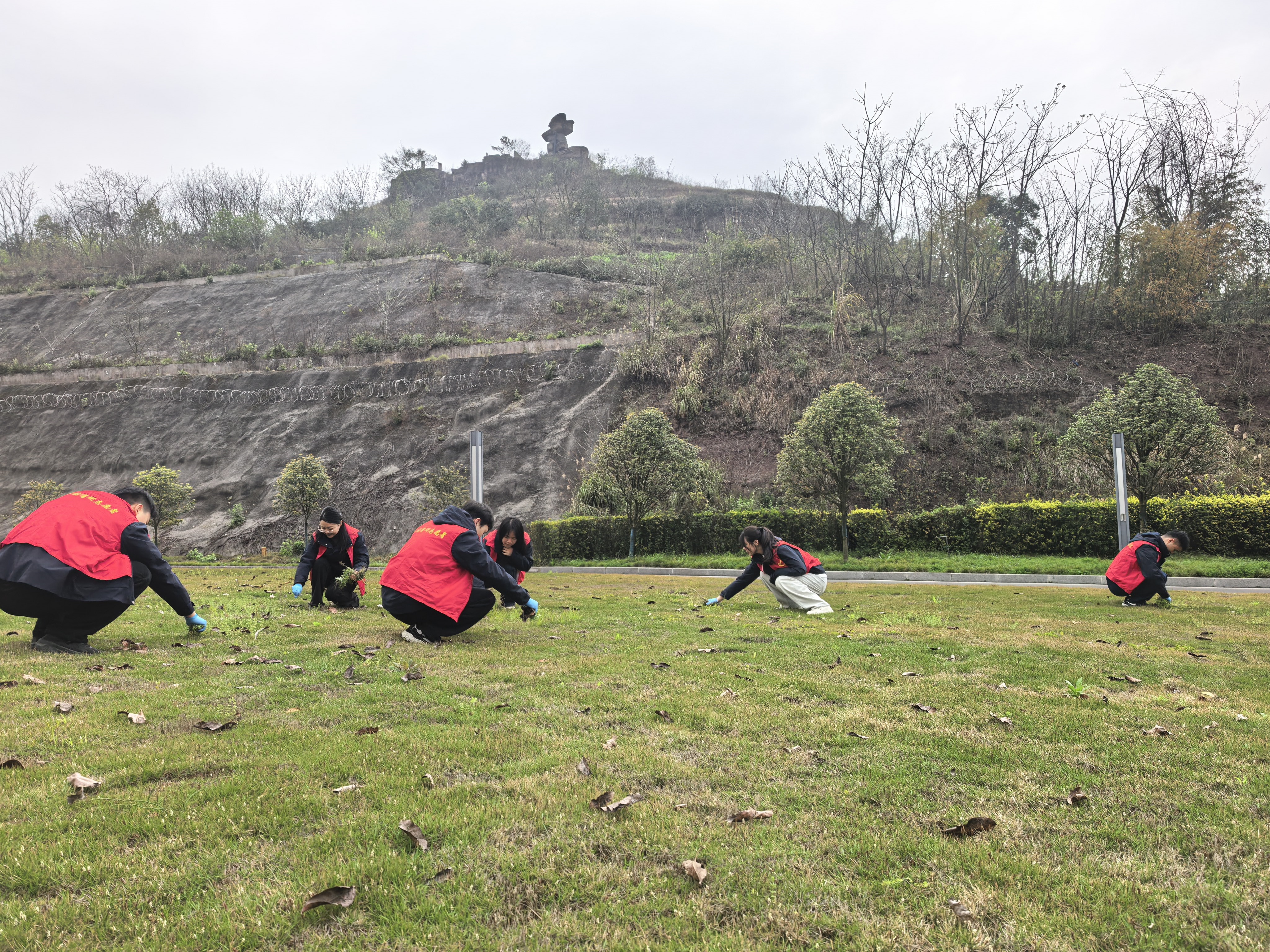 活动现场,团支部书记进行简短的动员和安全提示后,志愿者们精神饱满、整装待发,迅速组成志愿服务小分队,随即投入到热火朝天的劳动中。大家有的弯腰徒手清理顽固杂草,有的用工具松动草根,有的及时清运杂物,不放过任何卫生死角,活动现场既有分工又有协作,欢声笑语伴随着铲草的沙沙声,交织成一首动人的春日劳动赞歌。经过一个多小时的奋战,原本杂草丛生的草坪焕然一新,变得整洁有序、绿意盎然。